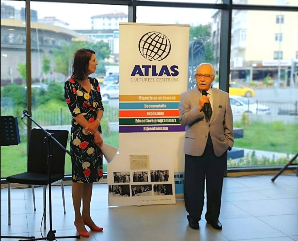 Ambassadeur Marjanne de Kwaasteniet, voormalig minister van Arbeid Ali Naili Erdem en de initiatiefnemer van ‘Gurbette’, Sahin Yildirim van Atlas Cultureel Centrum waren aanwezig bij het evenement.